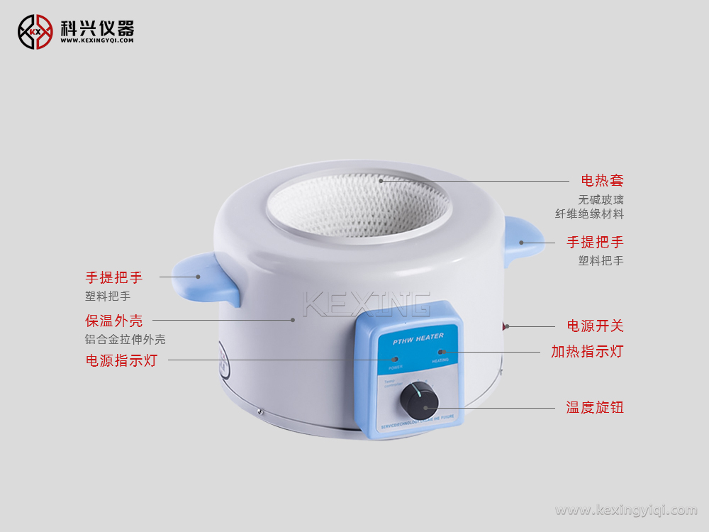 PTHW電熱套是通過電子調壓實現恒溫加熱的電熱套,它是用無堿玻璃纖維作絕緣材料,將Cr20Ni80合金絲簧裝置于其中,用硅酸鋁棉經真空定型的半球形保溫體保溫,外殼一次性注塑成型,上蓋采用靜電噴塑工藝,由于采用球形加熱,可使容器受熱面積達到60%以上,具有升溫快,溫度高、操作簡便、經久耐用的特點。特別適用于醫藥、石油、化工、大中專院校、環保等行業實驗室液體加熱及反應實驗。